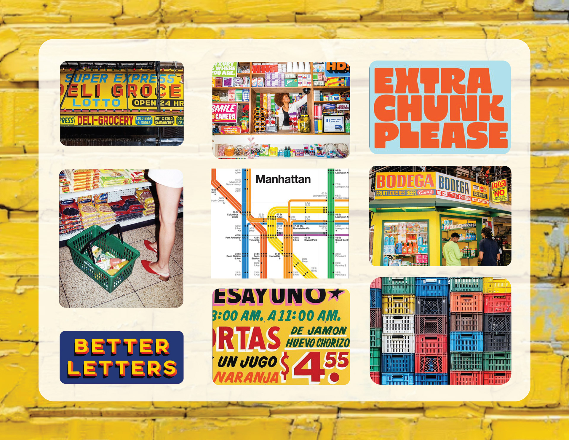 The process for designing this dynamic logo involved pulling graphic inspiration from the bold, typographic lettering of existing Bodega signs, hand-painted Mexican Rótulo signage, and the famed Massimo Vignelli NYC Subway map.