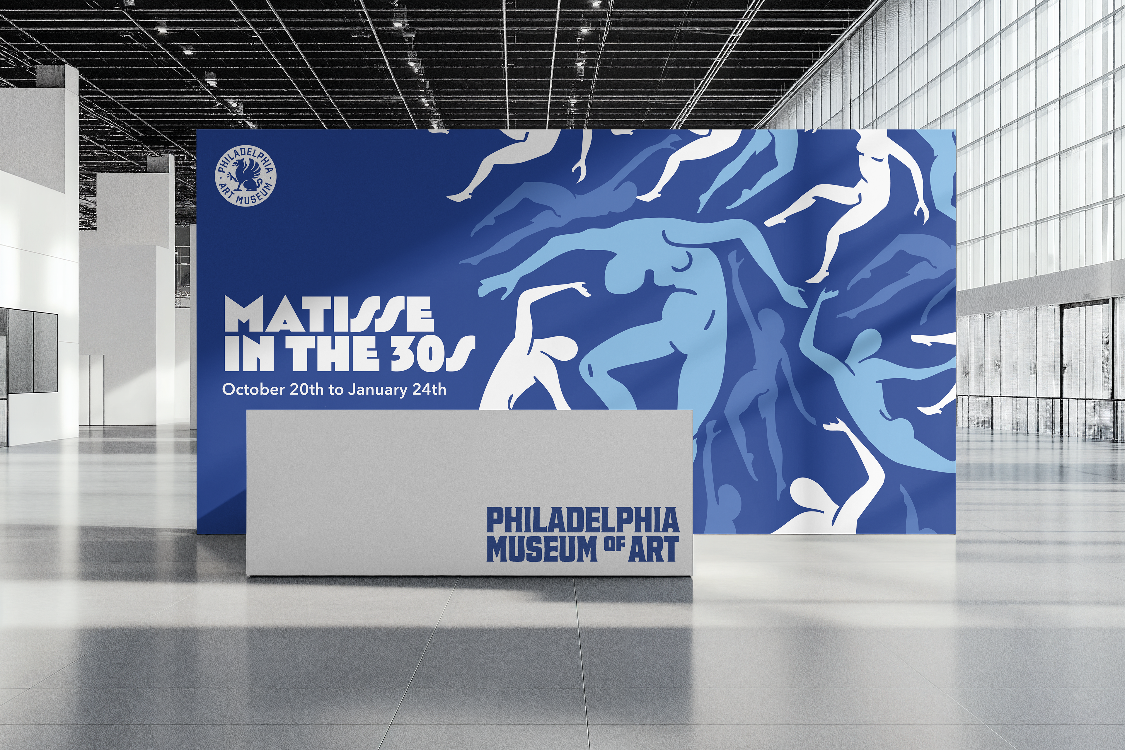 This piece alludes to his later success to his Blue Nudes series in the 50s, but takes a more fluid form while maintaining the structural integrity of the paper cut outs. The collage-style design was created to be modular, easy to adapt and abstract for different form such as museum banners, signage, and promotional materials.